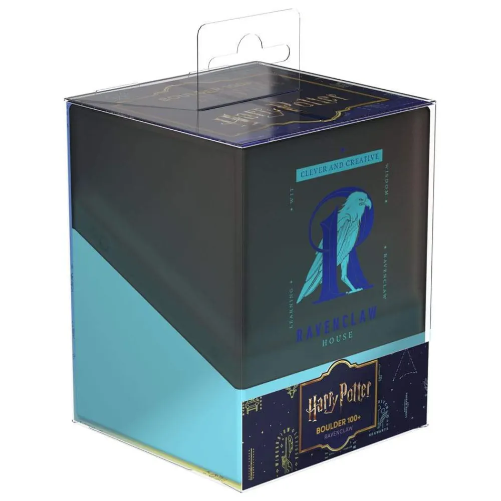 Show your House allegiance to Gryffindor, Slytherin, Hufflepuff or Ravenclaw with the Harry Potter Boulder 100+ deck box from Ultimate Guard. The durable card box is easy to open despite its secure closure, has a pleasant soft-touch surface and offers space for 100 (in double protective sleeves) or 120 (in single protective sleeves) cards of standard size or smaller, for example from Magic: The Gathering, Lorcana, Pokémon or Yu-Gi-Oh!