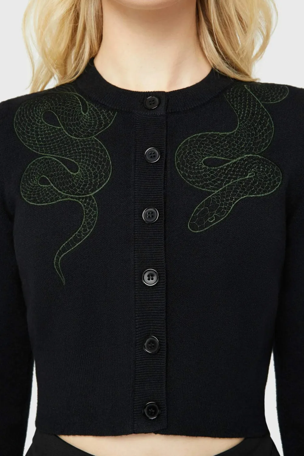 – Unique snake embroidery over shoulders.