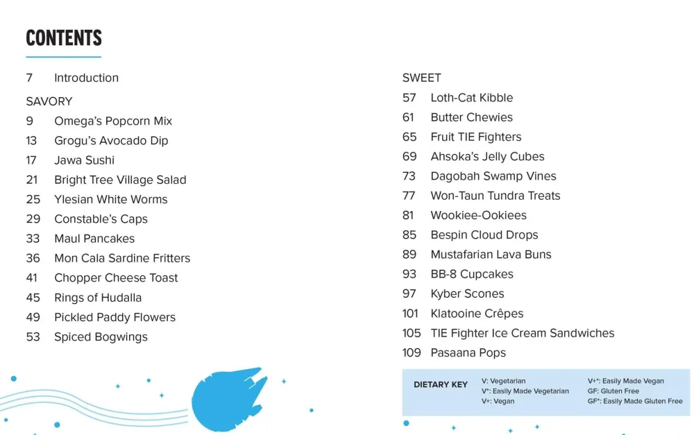 BITE-SIZE AND DELICIOUS: Yato yato. Find here a culinary adventure for all: from padwans to Jedi masters, and everyone in between. Discuss intergalactic politics over a Chandrilan Cheese Board, reminisce about your (imaginary) trip to Kashyyyk over a refreshing Shi-Shok Fruit Bowl, invite friends to crunch with you on some healthy Moss Chips from Dantooine, and so many more intergalactic tasty treasures of a long, long time ago and very far away.
