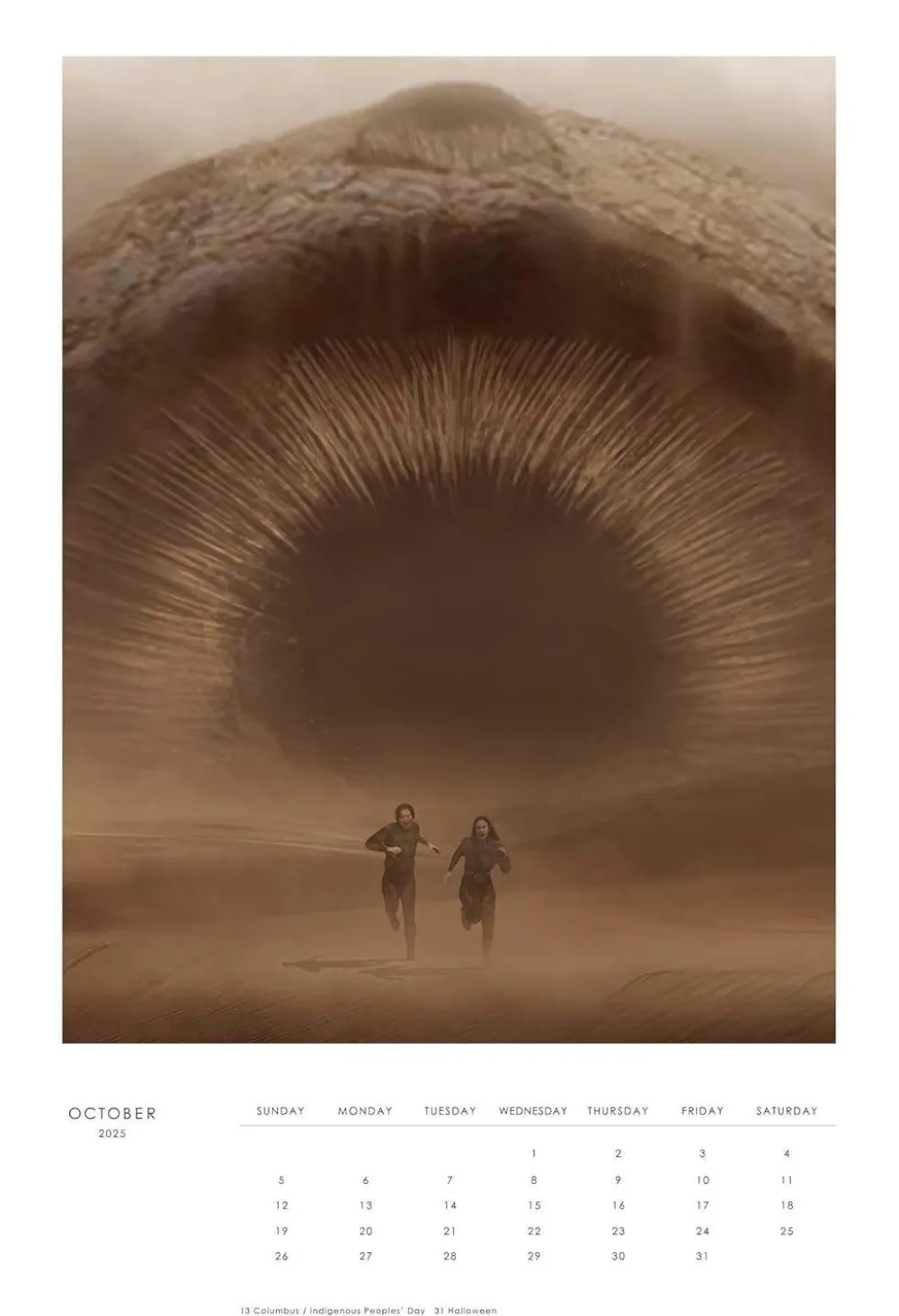 A YEAR OF DUNE: With unique art from Denis Villeneuve’s highly acclaimed adaptation for each month, this poster wall calendar lets you spend an entire year immersed in the visually dazzling world of Dune.
