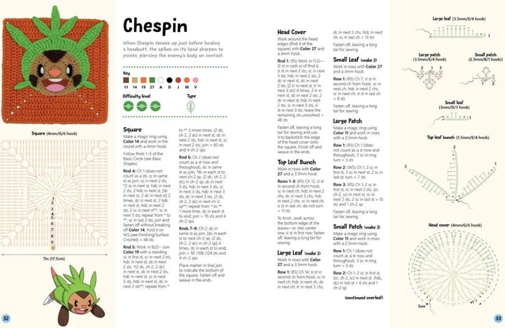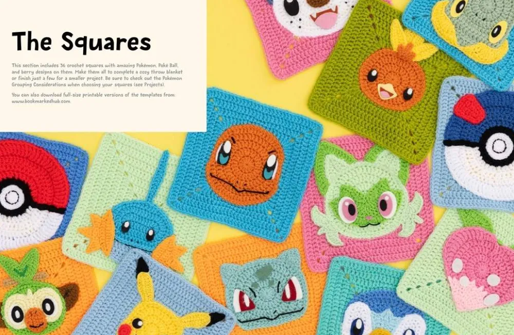 - 36 Unique Squares: A wide variety of Pokémon, Poké Balls, and berries to crochet.