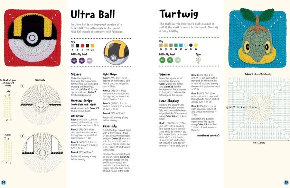 Ira Rott’s beginner-friendly designs bring the Pokémon to life with easy crochet techniques. Each crochet square is super achievable thanks to clear step-by-step instructions written in U.S. crochet terms, full-color charts and helpful tips to guide you every step of the way.