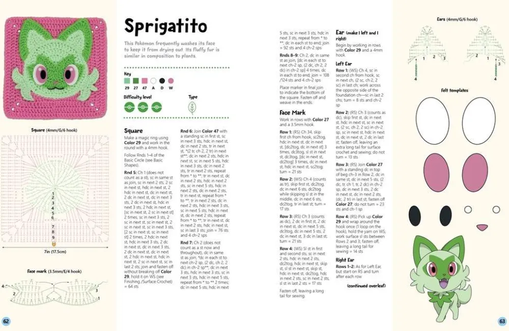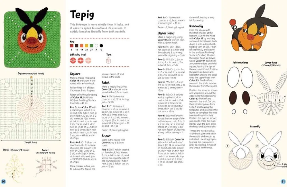 Whether you choose to repeat the same square multiple times to celebrate your favorite Pokémon or crochet one of each square for an epic multiple Pokémon project, this colorful book will give you everything you need to delight fans of Pokémon of all ages.