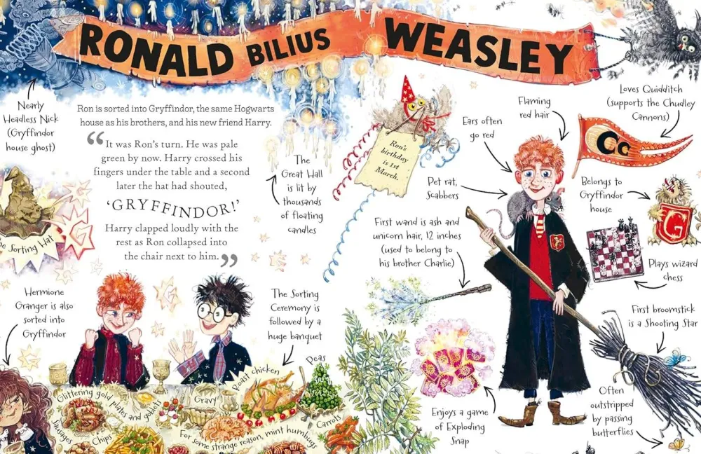 Find out all this and much more about Ron Weasley! See Ron get sorted into his Hogwarts house, explore his bedroom at The Burrow and meet the rest of the Weasleys. Get set for a flying car, wizard sports, Hogwarts feasts and a houseful of unforgettable pets …