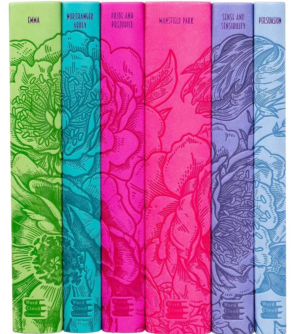 Jane Austen’s stories of clever women, elusive love, and social mores have struck a chord with millions of fans who consider her work compelling, heartwarming, and essential. Adapted time and again for screen and stage, these enduring classics remain as enjoyable as ever. This elegant, colorful collection includes Austen’s acclaimed novels Sense and Sensibility, Pride and Prejudice, Emma, Mansfield Park, Persuasion, and Northanger Abbey. Readers will be enchanted by these stories and by the decorative books in this set, which include specially designed spines, custom endpapers, and images painted on the page edges that form a scene across the set. These books aren’t just for your bookshelf. They’re a beautiful way to add color and style to a room. Just like they do with Jane Austen’s memorable characters, readers and interior design aficionados will fall in love with these beautiful novels.
