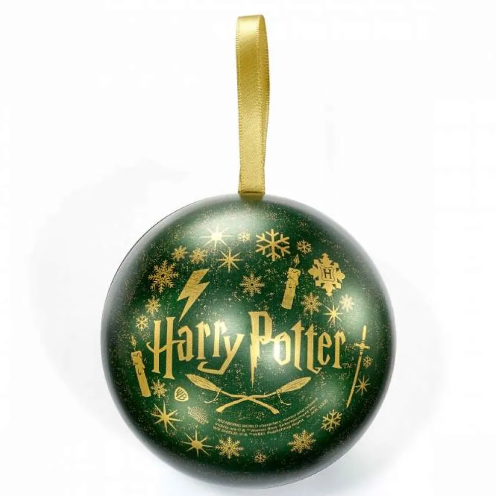 This Green metallic tin bauble is printed with the Slytherin House design on one side and Harry Potter logo on the other and contains a Slytherin house necklace.