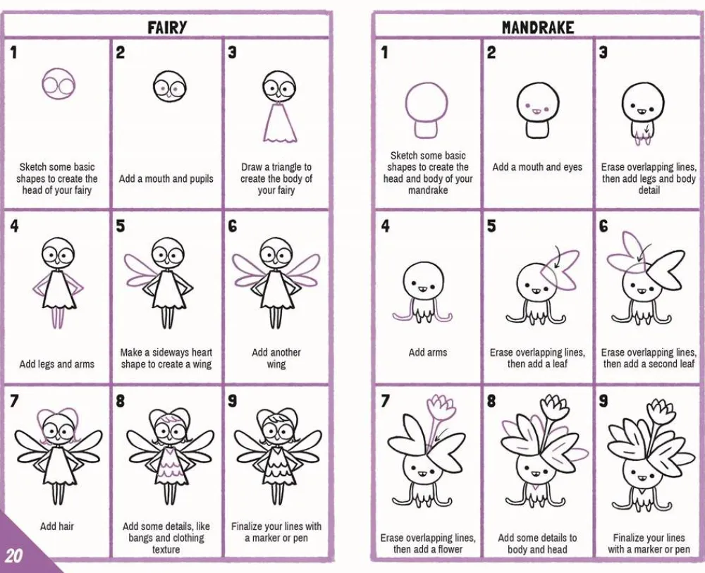Readers will learn to draw a gnome, fairy, mandrake, elf, jackalope, lava monster, mere creature, phoenix, golem, unicorn, minotaur, troll, yeti, kraken, and dragon.