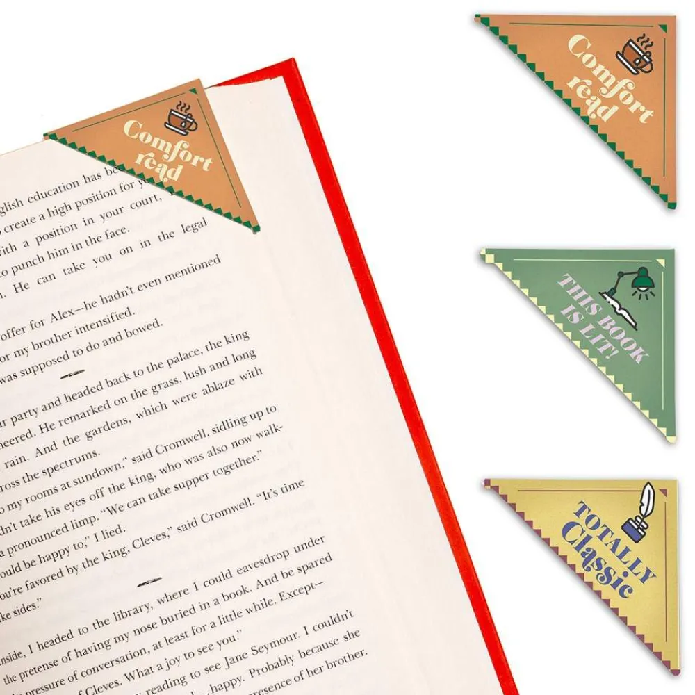 - 3 corner bookmarks, 2 x 2 x 2.75 inches each