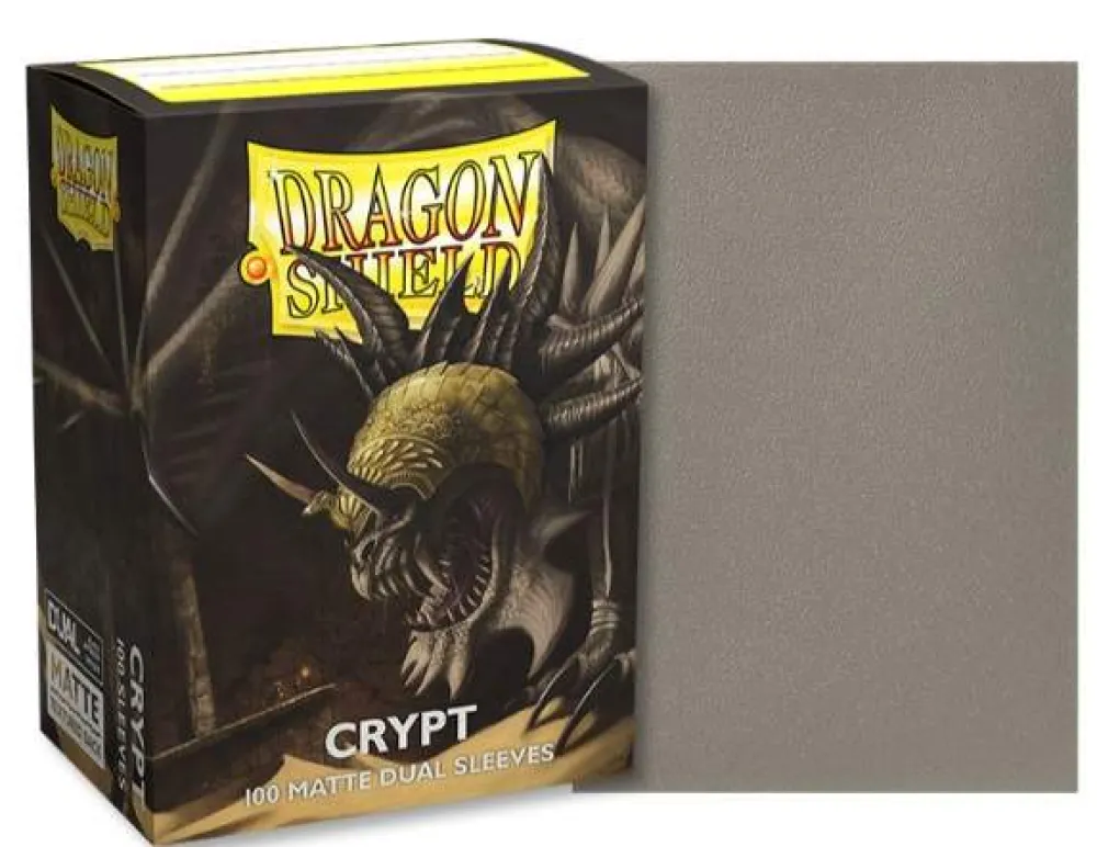 Dragon Shield Matte Dual sleeves. Clear front and a textured matte back. Fully opaque sleeves with a black interior, an elegant backdrop for black bordered cards.