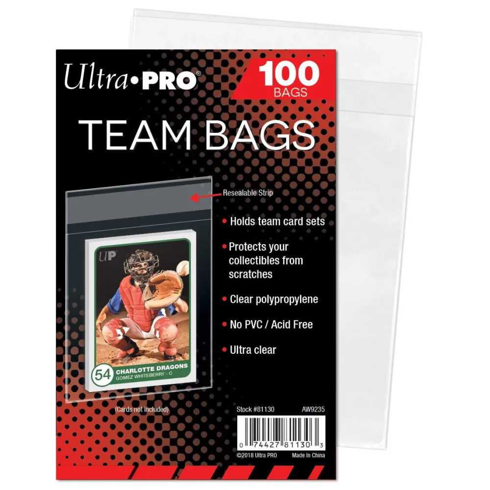 Archival-grade, acid-free and non-PVC premium bag designed to hold team sets or card sets. Resealable edge allows for easy removal of cards. 100 count per pack.