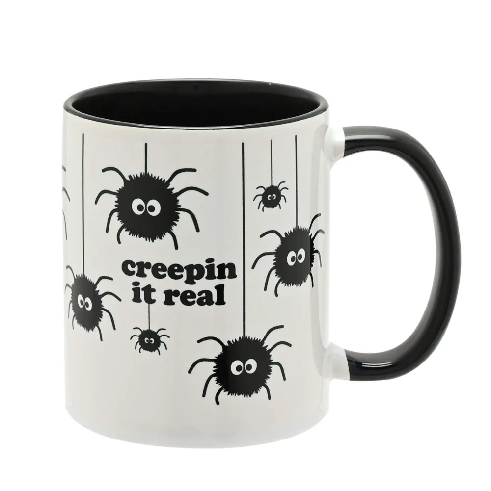 A Creepin It Real, Black Handled Mug in Stoneware and a Glazed Finish, from HOCUS POCUS NOVELTIES.