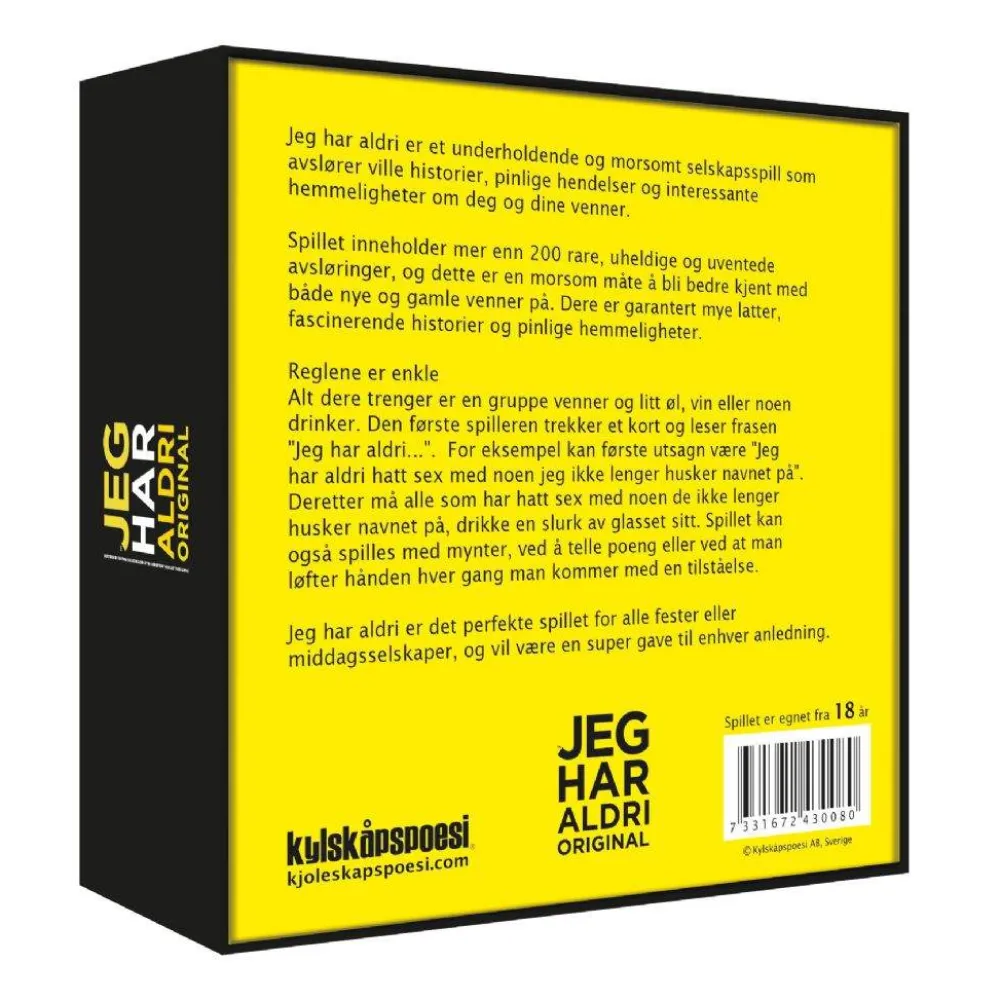 Jeg har aldri er et underholdende og morsomtselskapsspill som avslører ville historier, pinlige hendelser og interessantehemmeligheter om deg og dine venner.