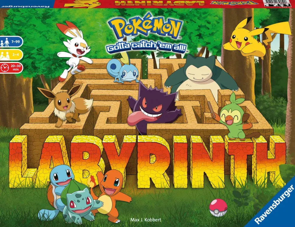 Utforsk labyrinten med Pikachu, Squirtle, Charmander eller Bulbasaur for å finne Eevee, Gengar og mer! Se hvilken Pokémon du må fange neste gang, og flytt deretter labyrinten for å nå dem. Vær den første som får tak i alle Pokémon-figurene på Poké Ball-pollettene dine, og gå tilbake til startstedet ditt for å vinne! Labyrint – en internasjonal klassiker i 35 år! Enkelt å lære og spennende for hele familien!