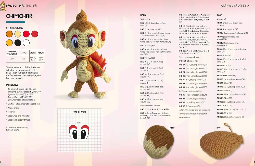 All Pokémon trainers need to train―themselves and their Pokémon. The same is true with crochet. To help in your training, the book starts with a how-to guide to understanding crochet patterns, then explains and demonstrates the various stitches needed to make the Pokémon. Then it addresses the special techniques you’ll need to master, which tools and materials you’ll need, and then how to put everything together to make a perfect Pokémon plushie.