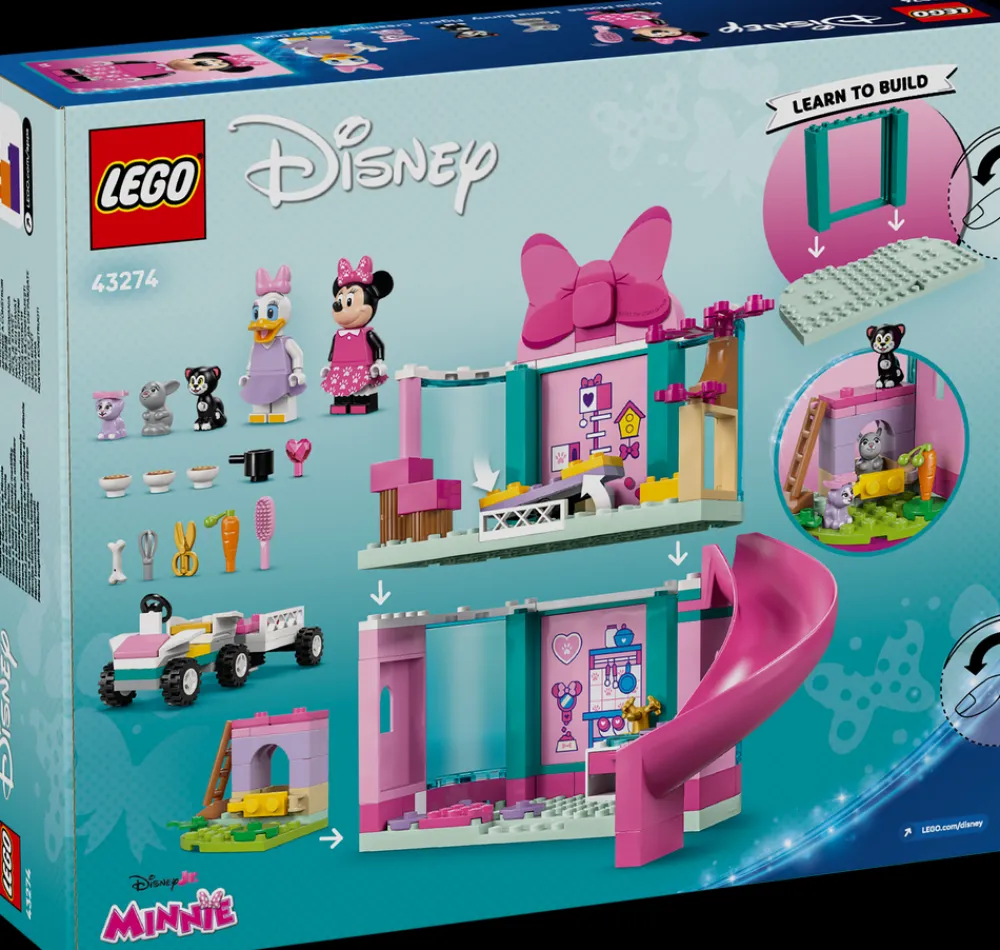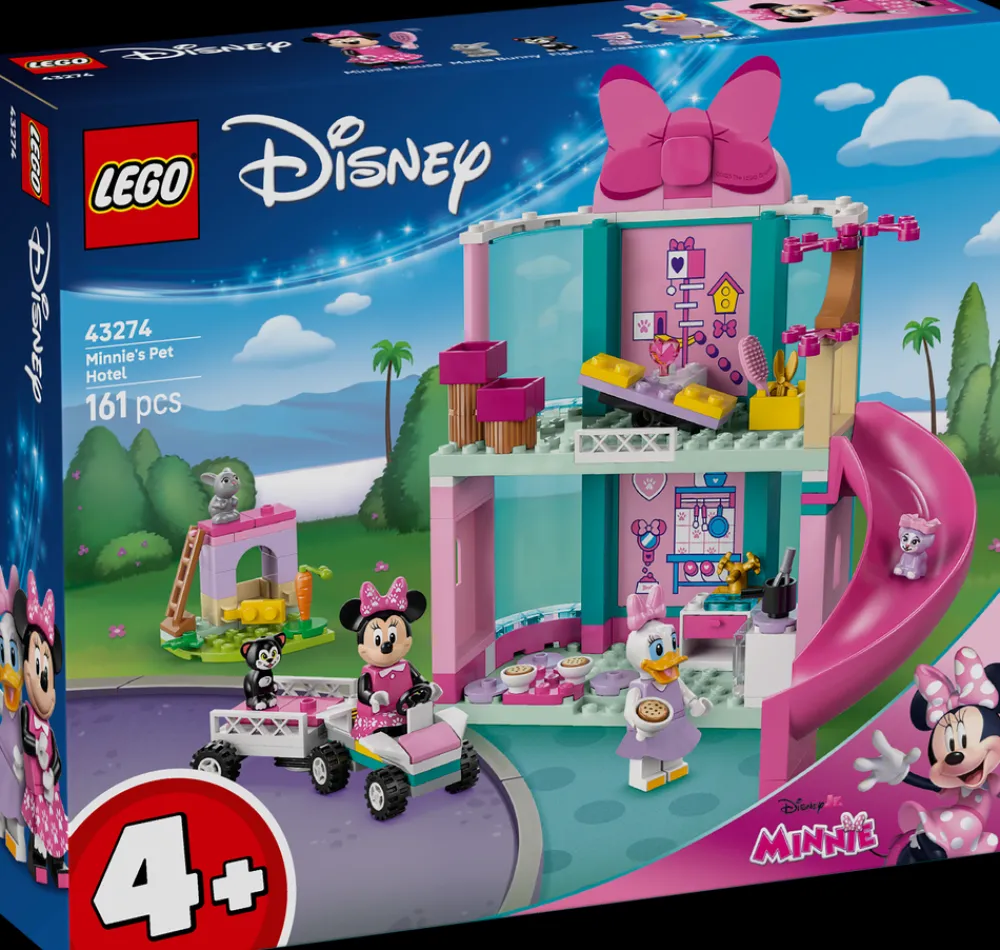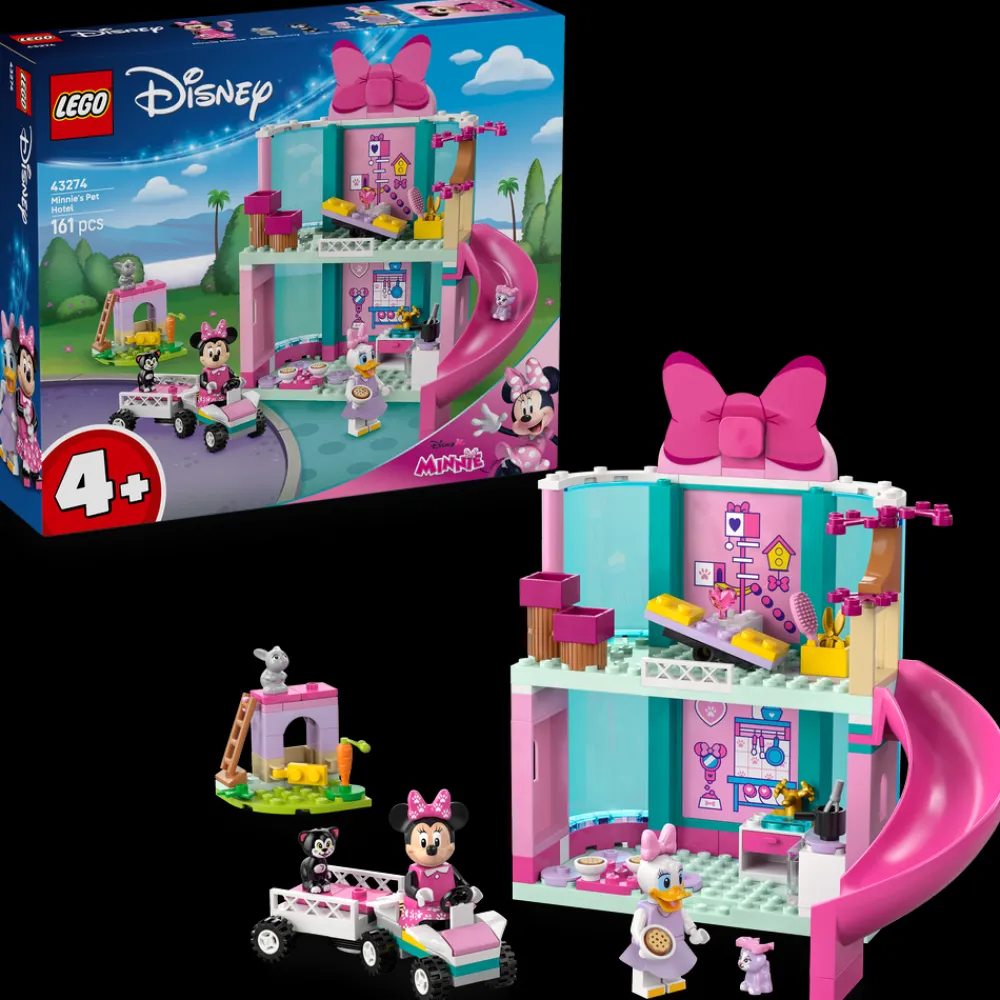 Fans av Disneys Mikkes klubbhus fra fire år får omsorgsfull lek mens de lærer å bygge med byggesettet LEGO® ǀ Disney Minnis kjæledyrhotell (43274). Det byggbare gavesettet for små barn inkluderer et toetasjes hotell med sklie, lekekjøkken og kaninbur, en bil med henger og mye mer. Settet inneholder også LEGO ǀ Disney minifigurer av Minni Mus og Dolly Duck samt LEGO ǀ Disney kjæledyrfigurer av Figaro, Creampuff og Mama Bunny.