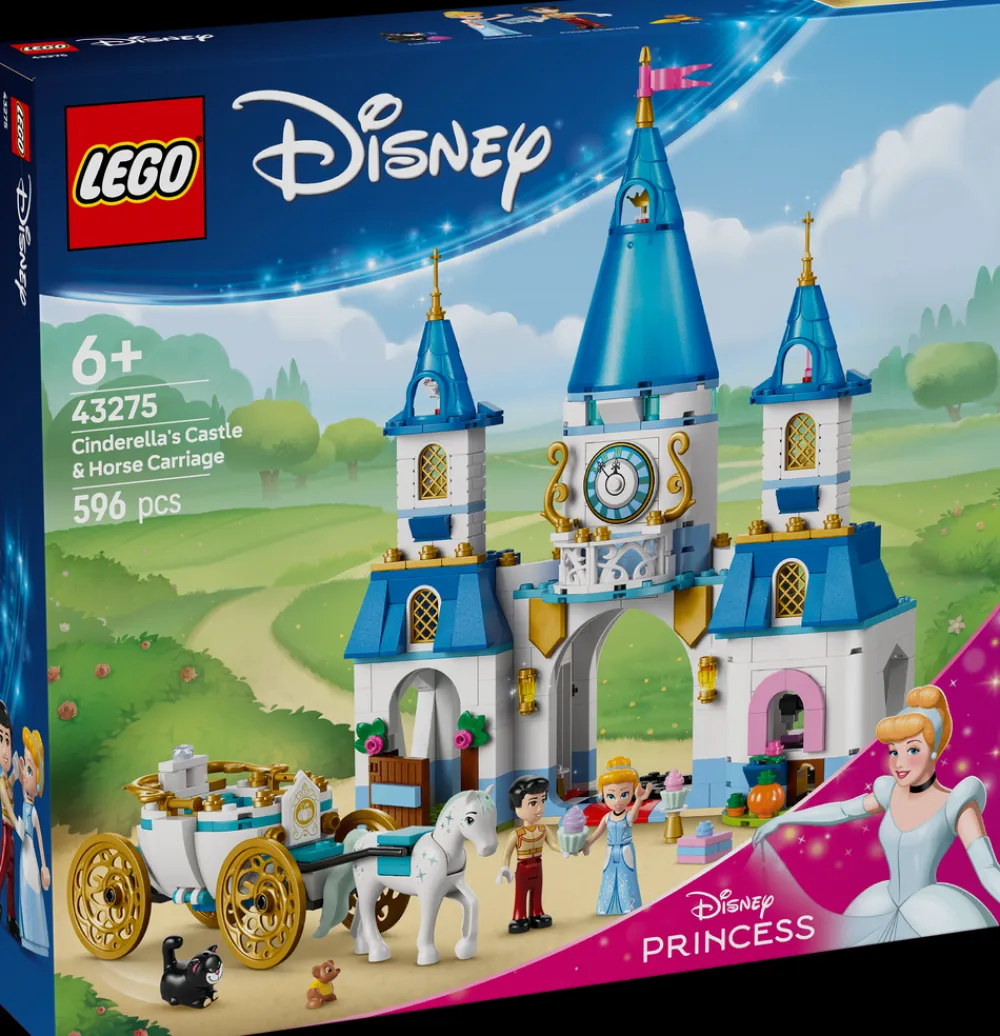 - Disney-slottslekesett – det byggbare eventyrslottet har fire innganger, inkludert en musedør, et vindu til Lucifer, Askepotts kjole, krone og tryllestav, en vogn med seletøy og gulldetaljer og mer