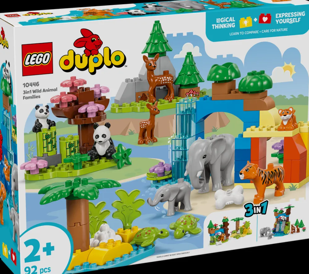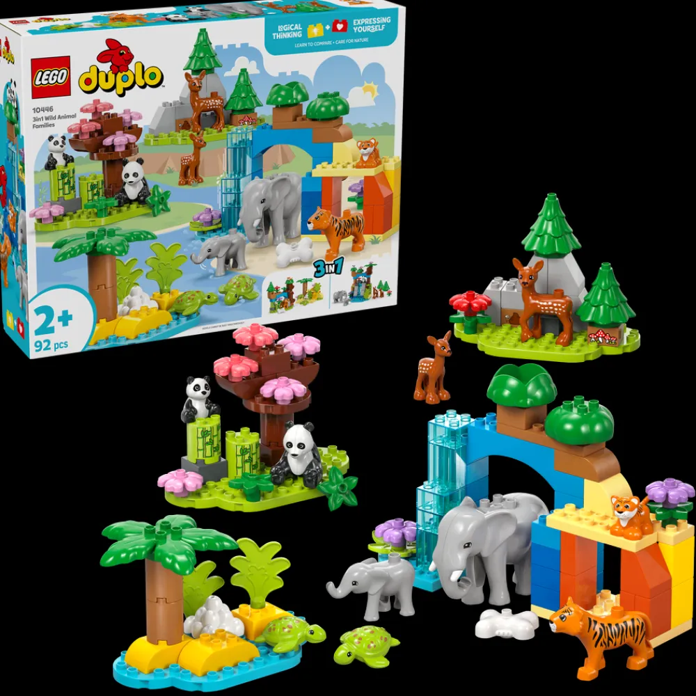 Ser du etter en gave til en dyrekjær smårolling? Førskolebarn kan bli med på en spennende reise jorden rundt med settet 3-i-1 Villdyrfamilier (10446), en pedagogisk leke med 10 LEGO® DUPLO® dyrefigurer.
