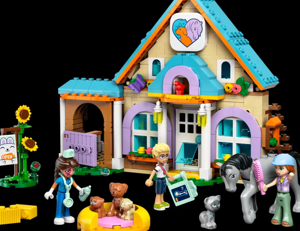 - Late som-lek for dyrevenner – settet Dyreklinikk med hest og kjæledyr for jenter, gutter og dyrevenner fra sju år inneholder tre LEGO® Friends minidukker samt figurer av en hest, tre hunder og en katt