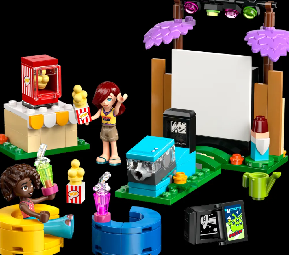 - To LEGO® Friends figurer – denne late som-leken inkluderer minidukker av vennene Paisley og Aliya, som inspirerer barn til å finne på ulike sosiale situasjoner tilknyttet vennenes filmkveld i Paisleys hage