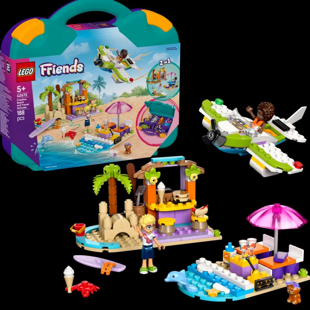 Dette 2-i-1-byggelegesettet tar barn med på en kreativ reise mens de bygger og bygger om forskjellige strandscener. Lekesettet LEGO® Friends Kreativ reise- og strandkoffert (42672) for barn er en fantastisk gave til jenter og gutter fra fem år. Barn kan bygge tre modeller med settet og deretter bygge dem om til alternative scener, eller de kan bruke kreativiteten sin til å bygge fantasifulle modeller av delene.