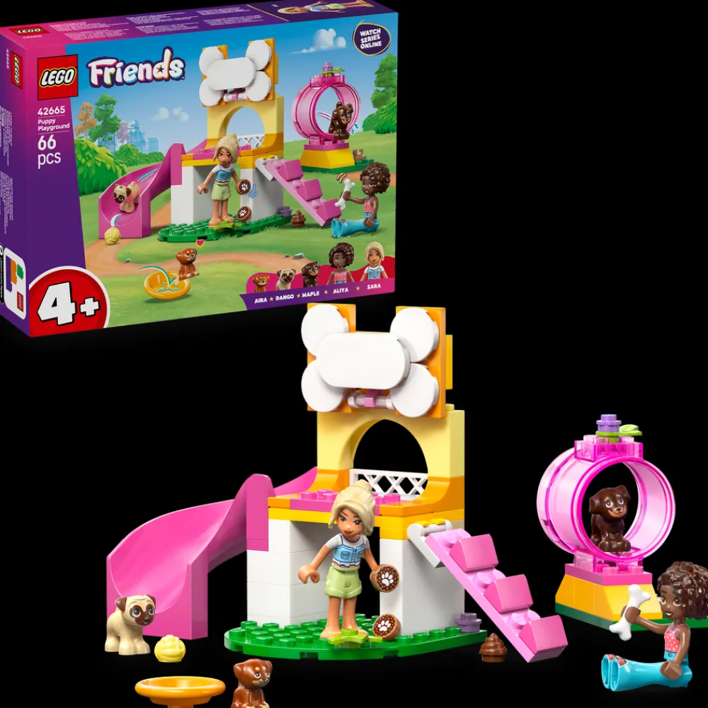 Dette koselige byggesettet kombinerer søte valper med gøyal late som-lek og passer perfekt for jenter og gutter fra fire år. Unge dyrevenner kan bygge settet LEGO® Friends Valpelekeplass (42665) og deretter finne på gøyale vennskapshistorier med figurene. Settet inkluderer minidukker av Aliya og Sara, tre hundefigurer og masse tilbehør til fantasifull lek.