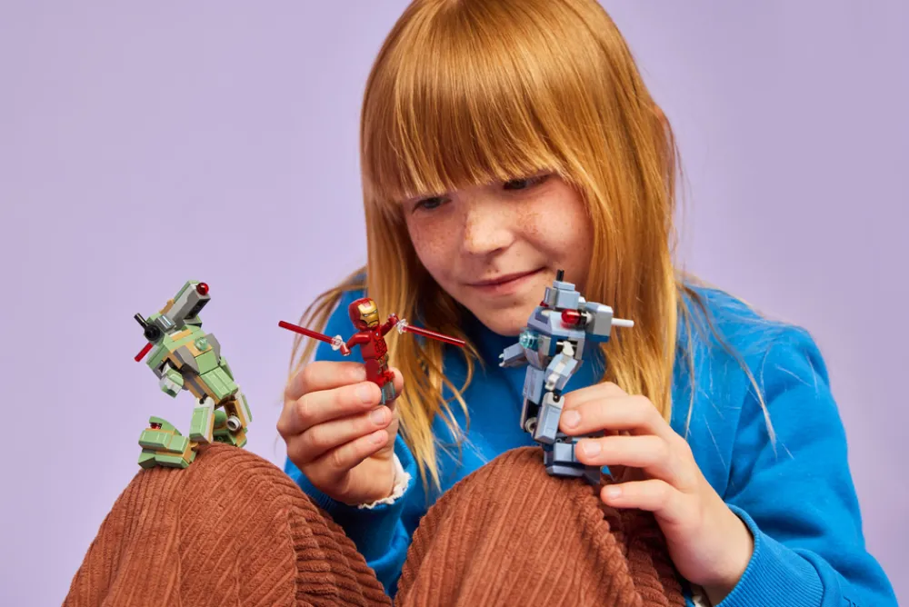 - Byggbar superheltleke – Iron Man og War Machine mot Hammer-droner er en liten gave til barn med actionfylte byggesett for actionglade gutter og jenter fra sju år og oppover