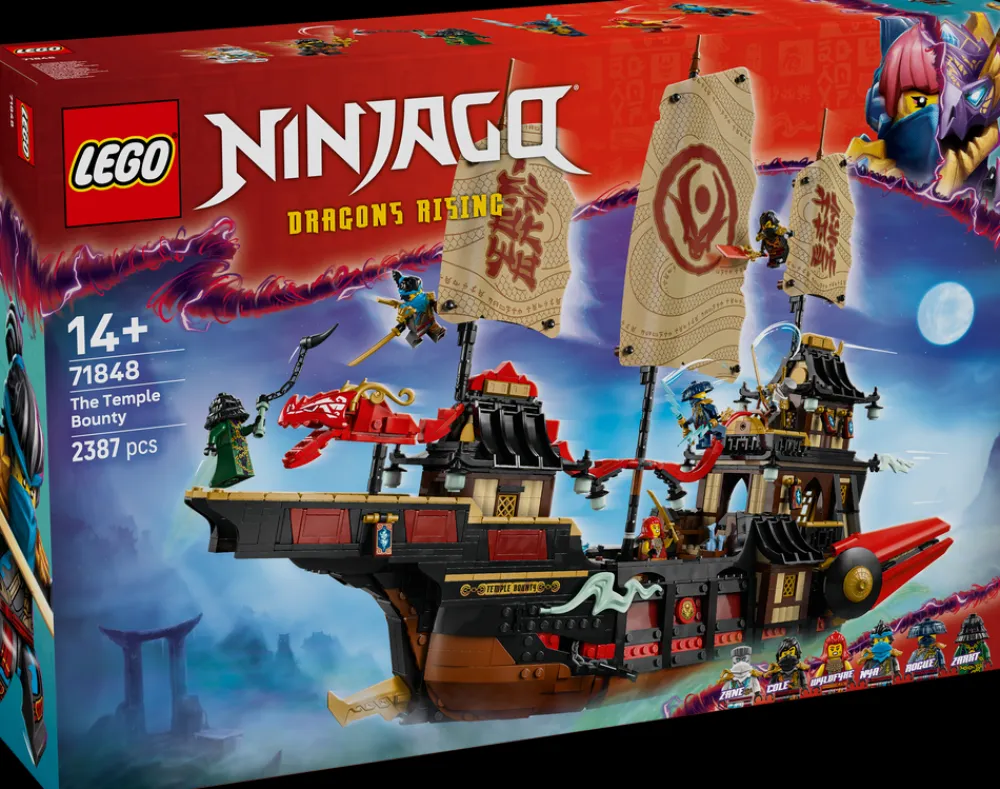 Eldre NINJAGO® fans fra 14 år kan glede seg til å utvide sin samling av LEGO® NINJAGO modeller med skipsleken Tempelskipet Bounty (71848). Den store og utrolig detaljerte skipsmodellen er den siste i en rekke berømte NINJAGO skip, og skipet har mange tøffe detaljer og funksjoner. Settet inkluderer også en utstillingssokkel, slik at fans kan vise dem fram på en hylle eller nattbordet sitt.