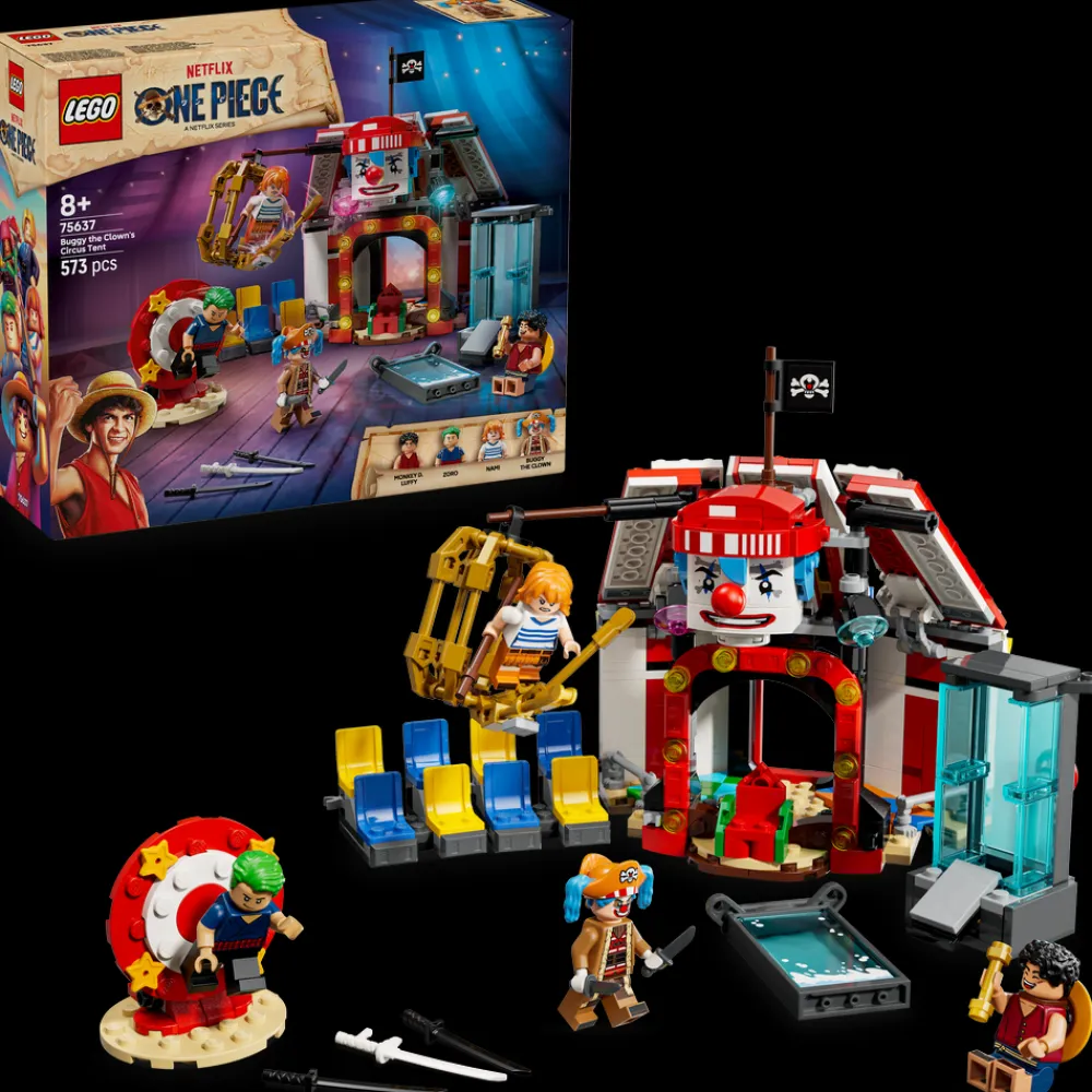 - ONE PIECE sirkuseventyr – Sirkusteltet til klovnen Buggy er et LEGO® anime-lekesett for gutter og jenter fra åtte år og oppover som tar barns fantasi med til sirkuset for kreativ rollelek