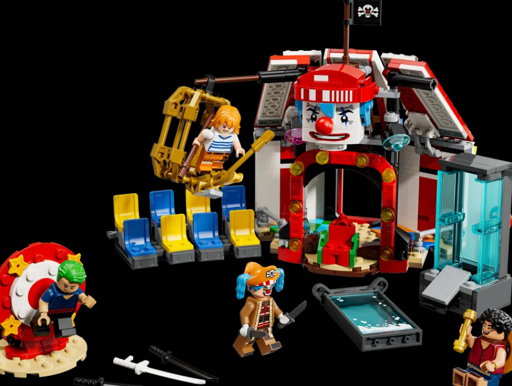 Settet inneholder minifigurer av Luffy, Zoro, Nami og sjørøverkapteinen klovnen Buggy. Det byggbare teltet kan snus for å skape et større lekeområde, med avtakbare stolseksjoner og Buggys trone. Det er tre sirkusinnretninger som heltene må rømme fra: en vanntank, et roterende vertikalt bord og et hengende bur. Inne i teltet er det bokser og tønner med deler som kan brukes til å bygge en mindre versjon av Buggy. Settet kommer også med mange kule våpen og tilbehør, inkludert to «Wanted»-plakater. For ekstra digital moro kan byggere zoome inn, rotere modeller i 3D og følge framdriften sin ved hjelp av den intuitive LEGO Builder appen. Settet inneholder 573 deler.