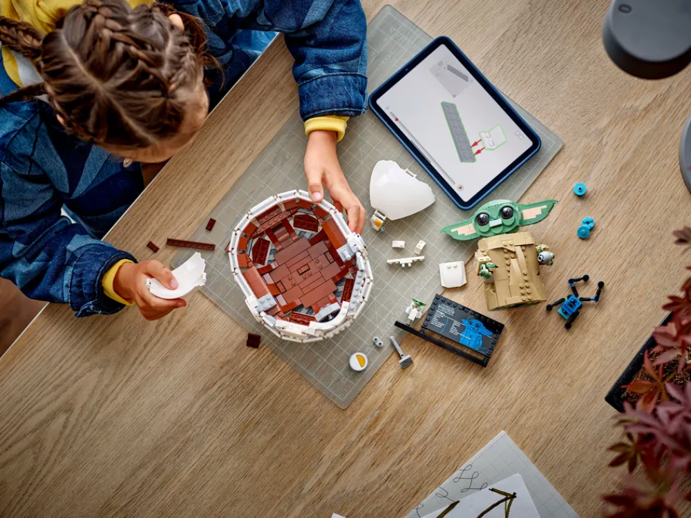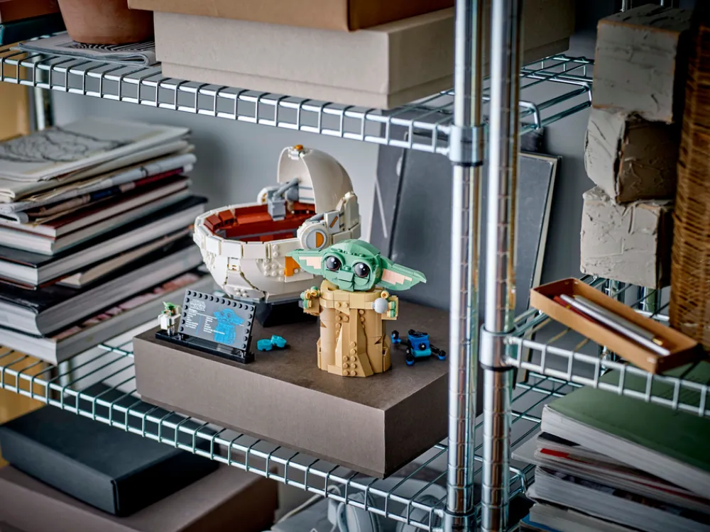 - LEGO® figur av Grogu – den byggbare hovedmodellen inkluderer en Grogu-informasjonsplate på en sokkel, hvor det er plass til en LEGO figur av Grogu i standardstørrelse, oppi en liten, byggbar svevevogn