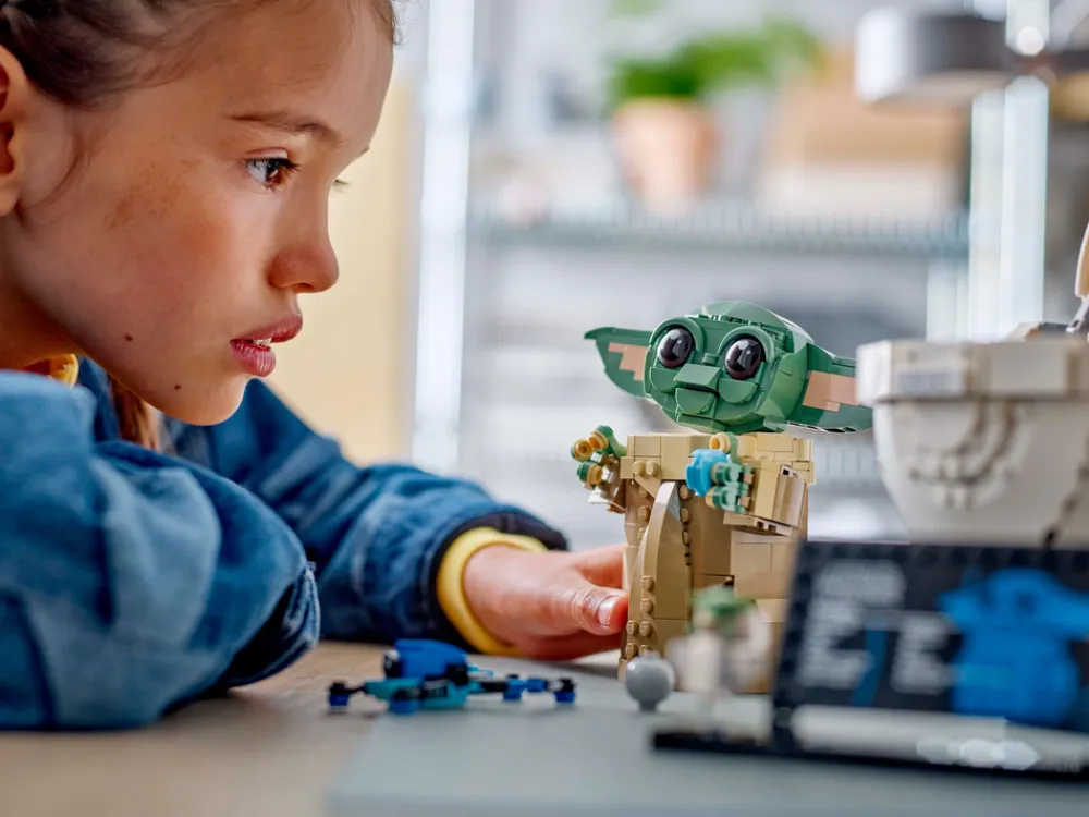 - Byggbar LEGO® Star Wars™ Grogu lekefigur med svevende barnevogn – bygg en søt Star Wars: The Mandalorian™ utstillingsmodell med Grogu