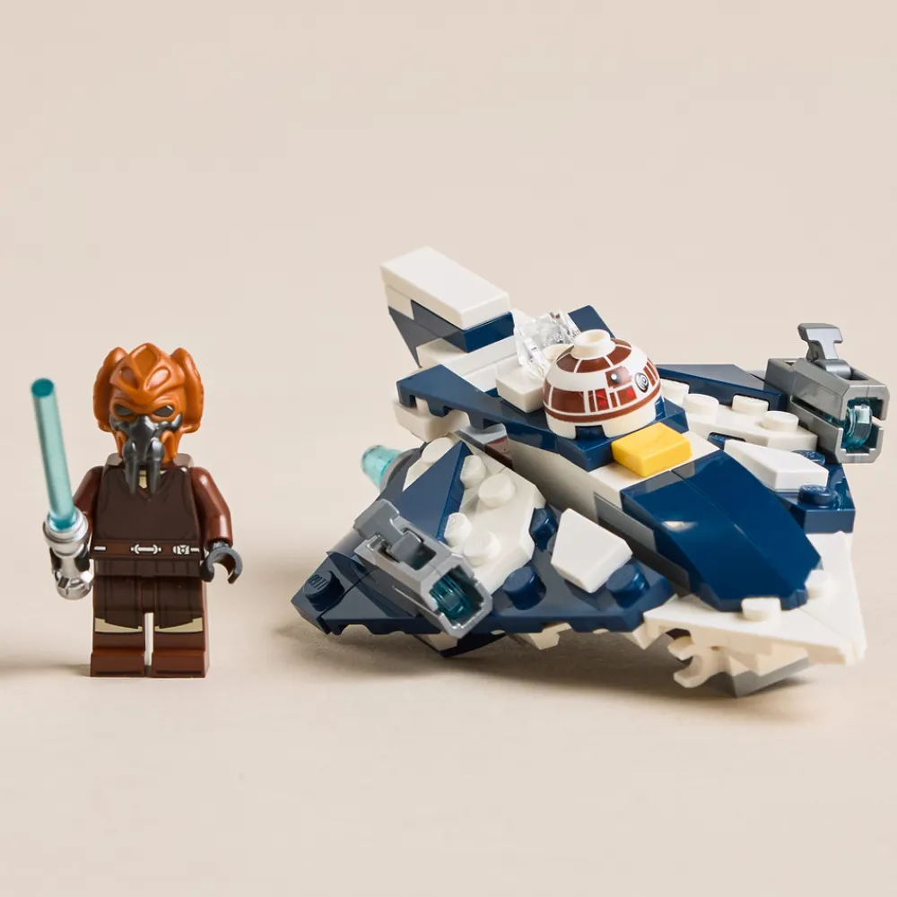Dette fantasy-byggesettet inkluderer også en LEGO minifigur av Plo Koon med en blå lyssabel som festes på undersiden av en Microfighter. Det er også et R7-D4-hodeelement som festes til flykroppen foran førerhuset, for å få det til å virke som om den pålitelige Star Wars-droiden er Plo Koons andrepilot på oppdragene hans.