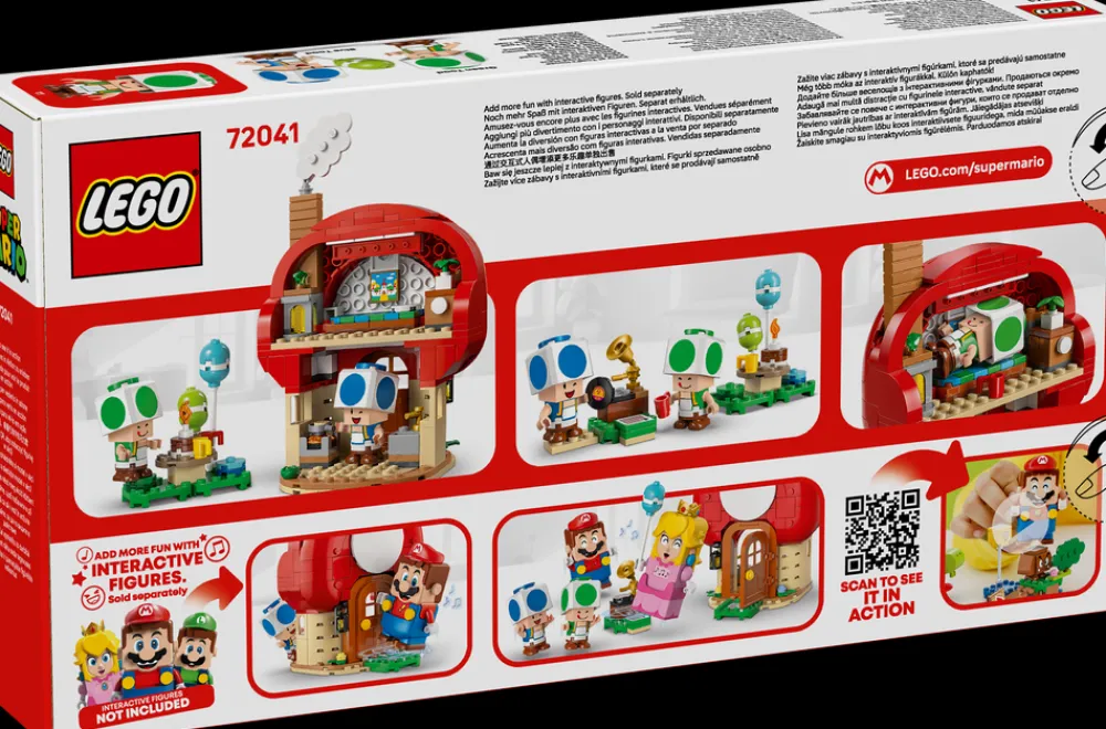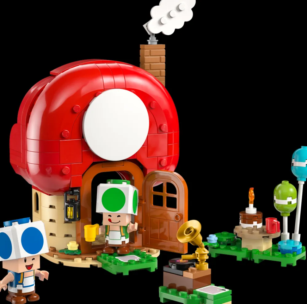 - Nå er det fest – Toad-huset rommer kjøkken og soverom (med et veggmaleri av slottet til Peach) og møbler som kan flyttes på, og settet inkluderer også et piknikbord, en platespiller og festtilbehør