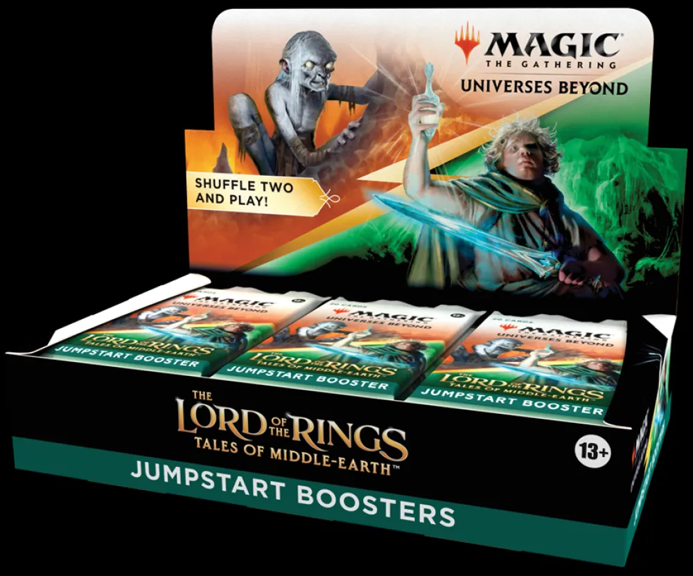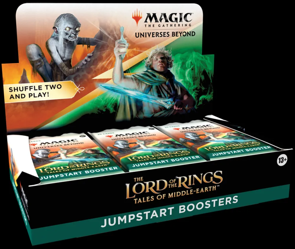 The Lord of the Rings: Tales of Middle-earth Jumpstart Booster Box contains 18 The Lord of the Rings: Tales of Middle-earth Jumpstart Boosters. Each booster has a theme. Just grab two packs and shuffle them together for wild combos and a unique gameplay experience that’s great for a quick game, for long-time fans looking to jump back in, or for a fun way to learn to play.