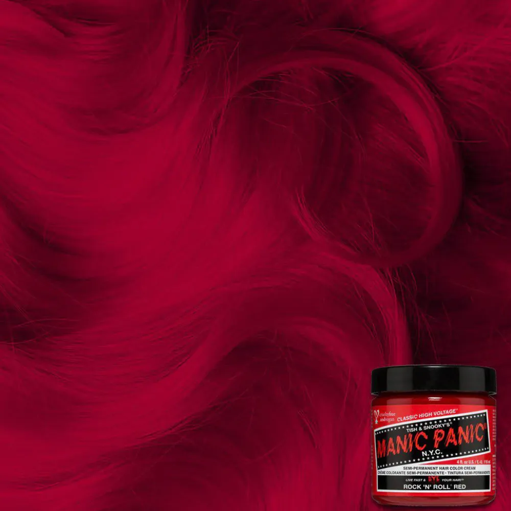 Rock N Roll Red er en varm, livlig rød hårfarge. Denne mellomfargede rødfargen anbefales for bruk på hår som er forhåndslysnet til lys blond nivå 8 eller lysere.