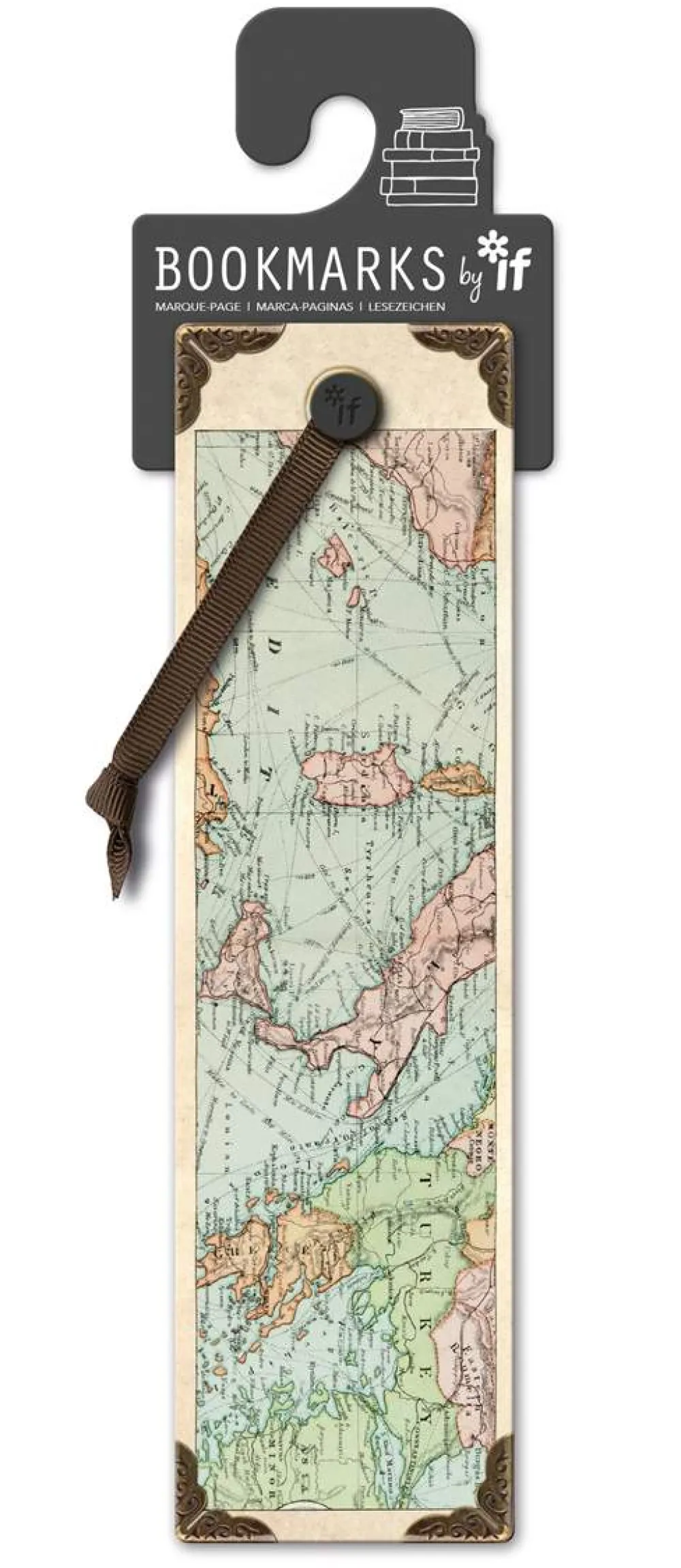Vintage «Map» bokmerke i kraftig kvalitetskartong med tekstilbånd Bokmerket er trykket på FSC MIX Paper C134008.