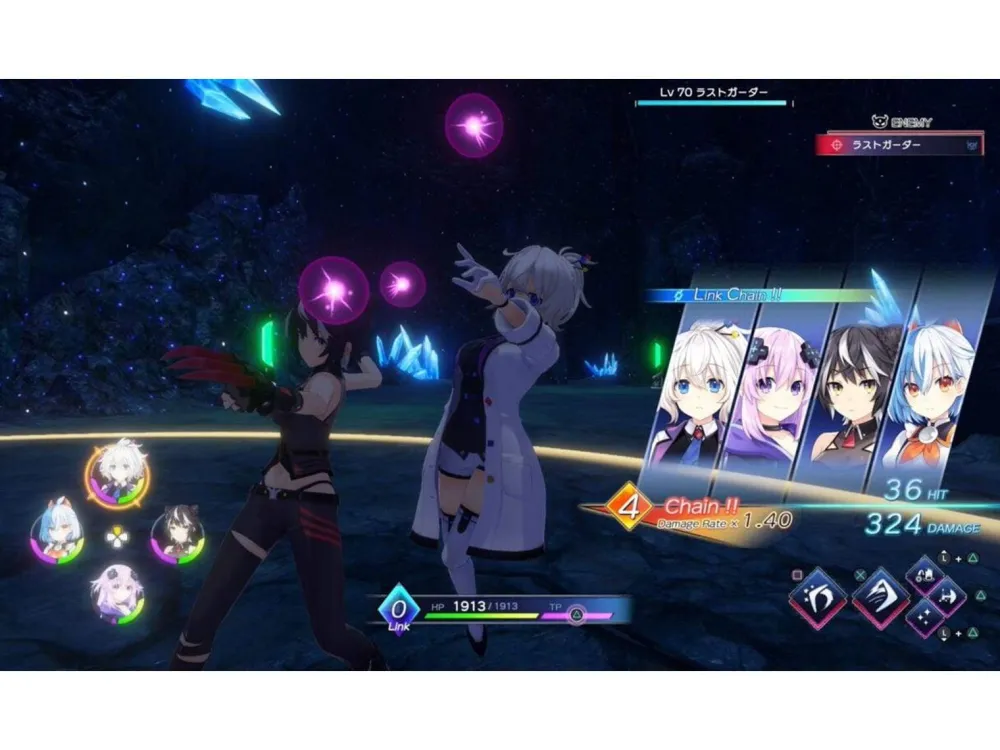 - Party Management 101 – Supervise a party of four to lead your company to the top! But there may be other game studios ready to take you down. With a revamped battle system, chained attacks, and transformative specials, Older Nep and friends are ready for victory!
