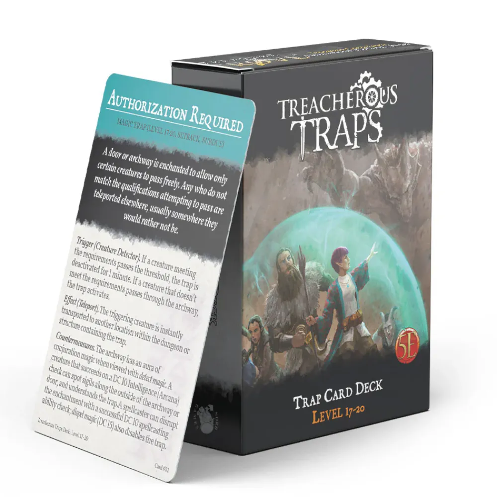 Save time while prepping or grab traps on the fly! Inside you’ll find 50 premade trap cards to challenge your level 17-20 party, ranging from minor setbacks to deadly threats.