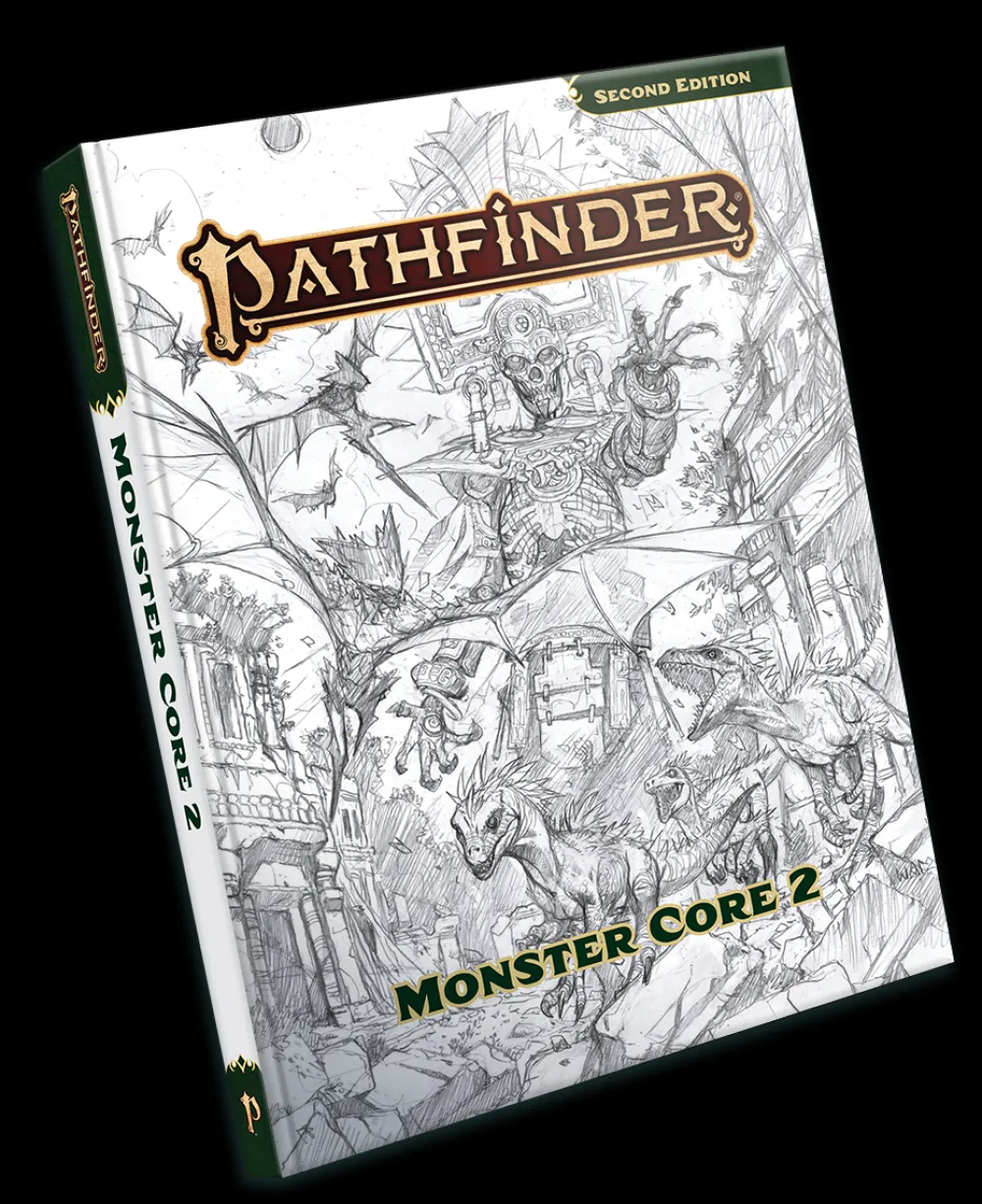 This sketch cover edition features a beautiful image of the original pencil sketch of the Pathfinder Monster Core 2 cover by superstar artist Wayne Reynolds, and is offered exclusively to Paizo’s hobby retail partners and on paizo.com.