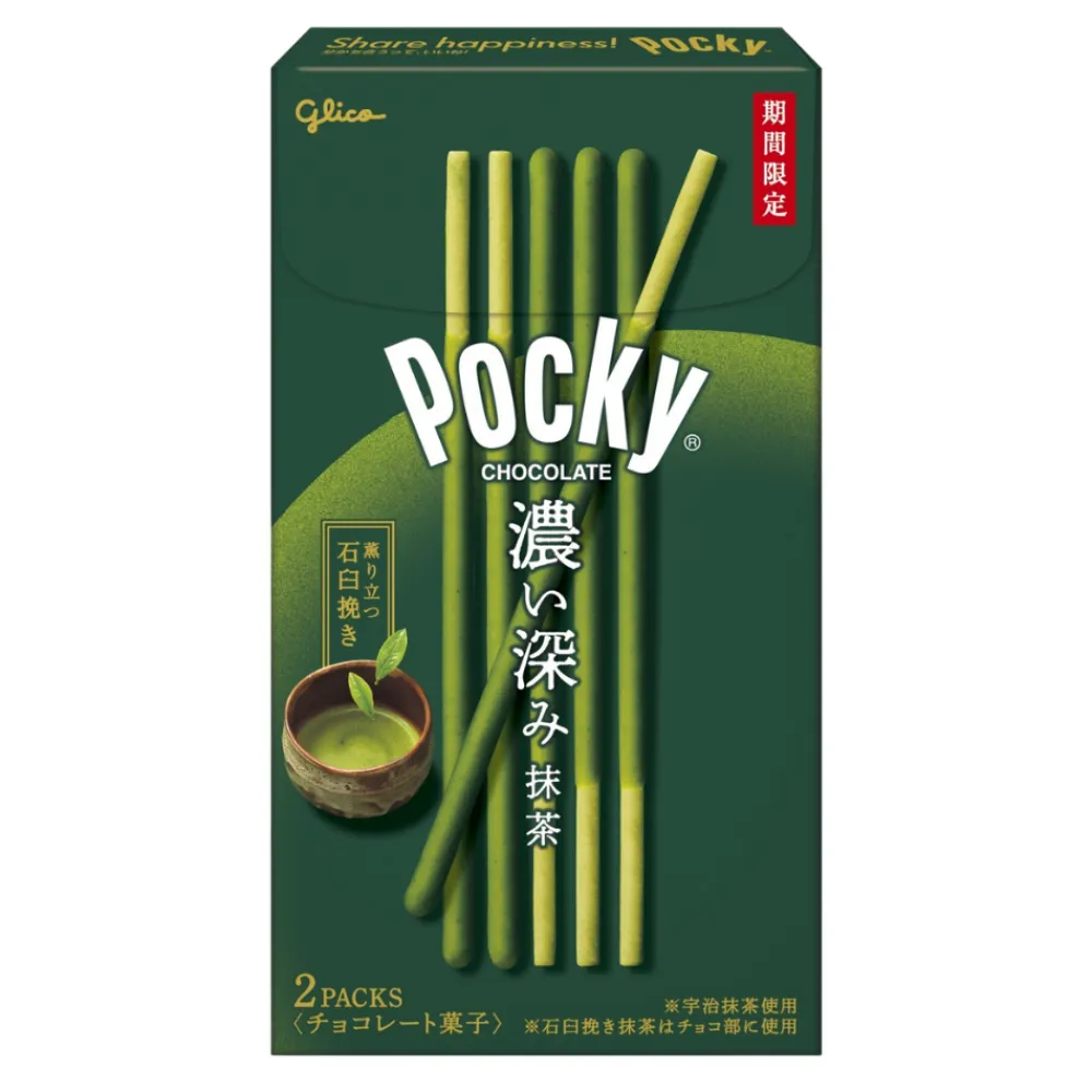 Japanske Pocky kjekspinner med sjokoladetrekk med matcha smak.