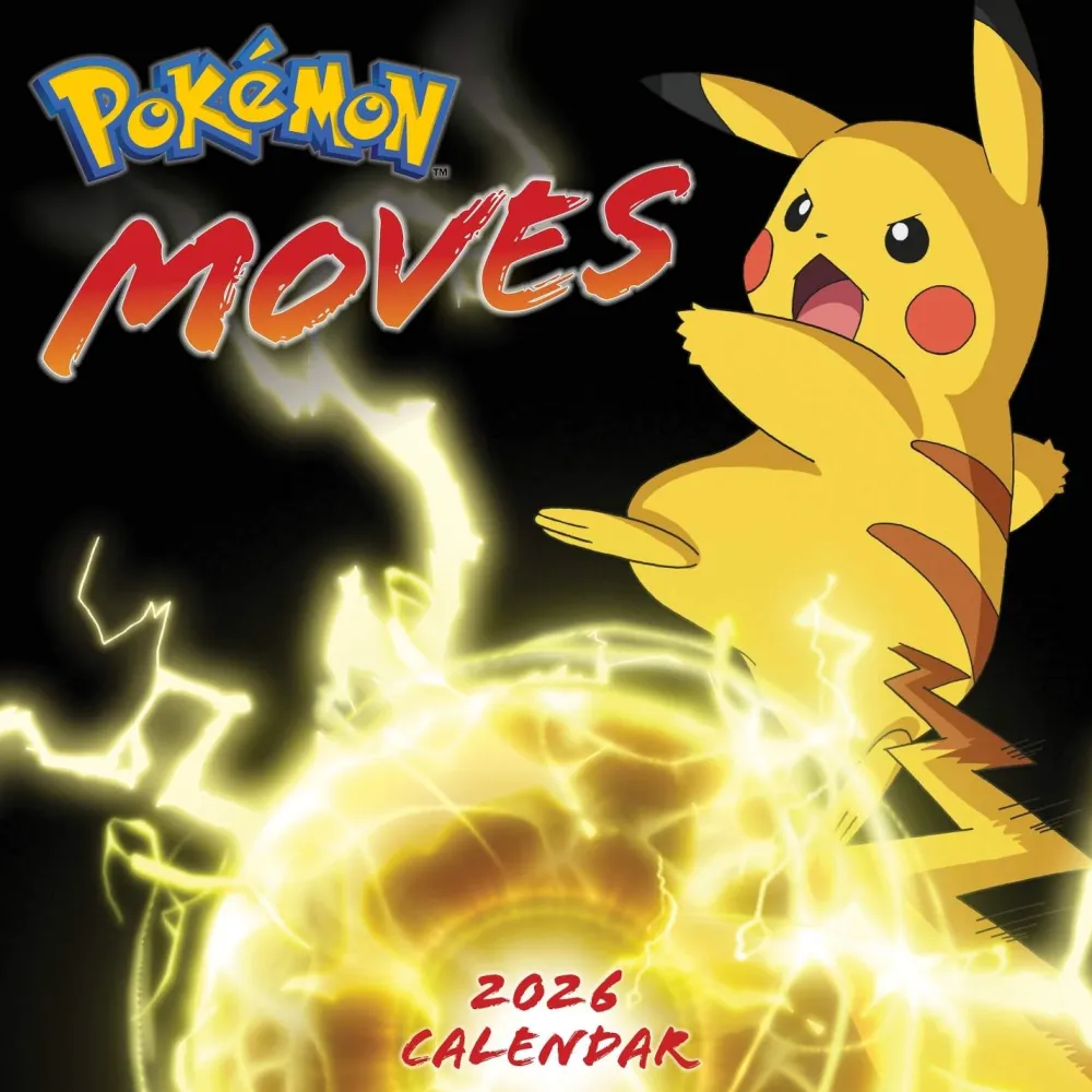 Featuring electrifying images of Pokémon and their signature moves, this 12-month calendar will keep all aspiring Pokémon Trainers on the go throughout 2026. Check out Pikachu and the Thunderbolt or Lucario and the Aura Sphere. Take a look at Venusaur and the Razor Leaf or Meowth’s Fury Swipes. All the images included are characters from the hugely popular animated television series.