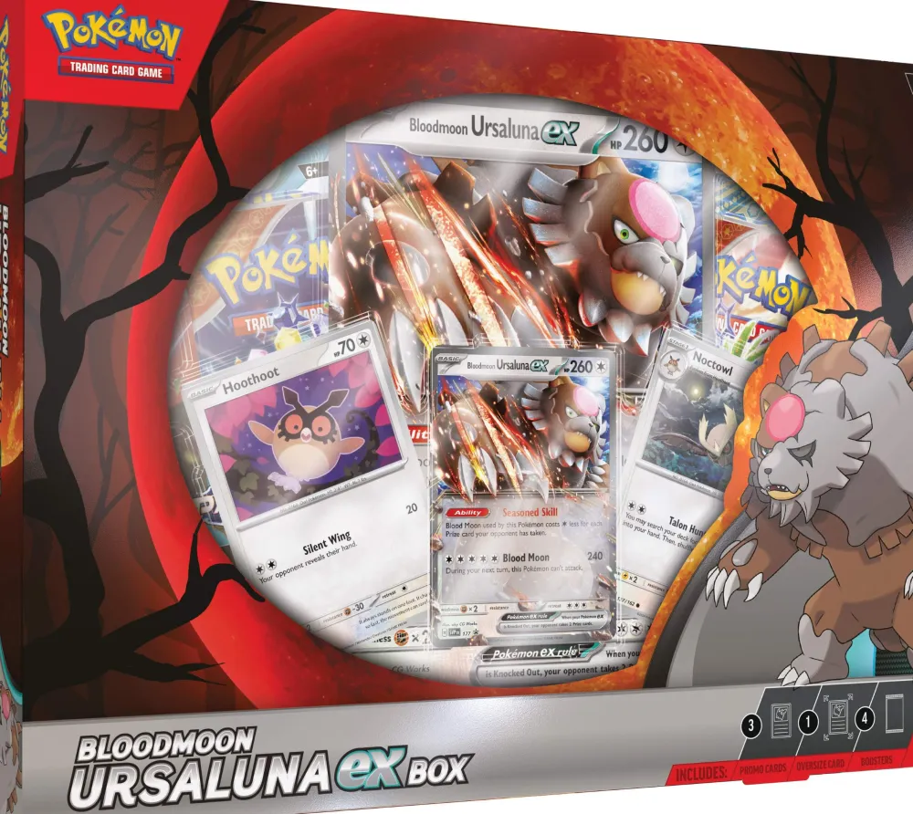 The Pokémon TCG: Bloodmoon Ursaluna ex Box includes: