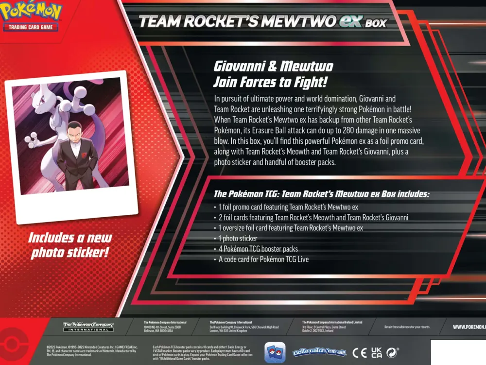 Team Rocket’s Mewtwo ex Box includes: