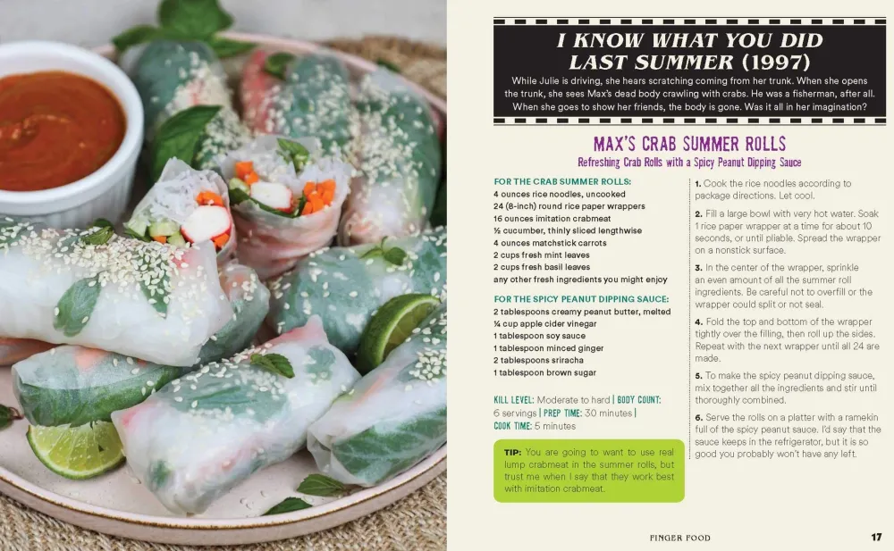 If you’re looking for kitschy Pinterest recipes like coffin-shaped cookies or zombie finger sandwiches, look elsewhere. With The Horror Movie Night Cookbook, you’ll enjoy thoughtful and tasty food and cocktail pairings inspired by the actual content of chilling classics like Jaws, Psycho, Scream, The Conjuring, The Evil Dead, Halloween, and more of horror’s most frightening favorites! Inside you’ll find recipes like: