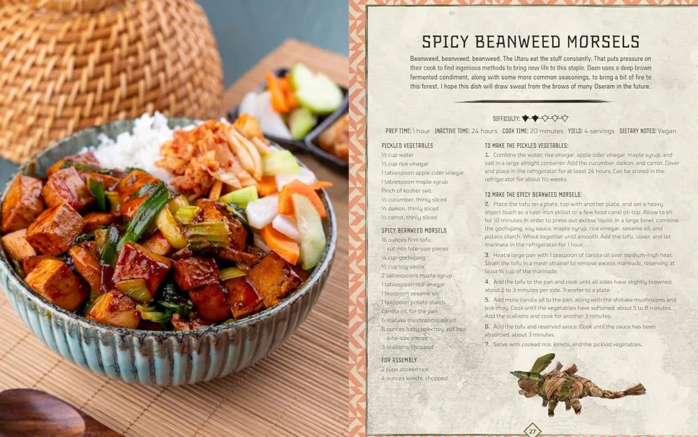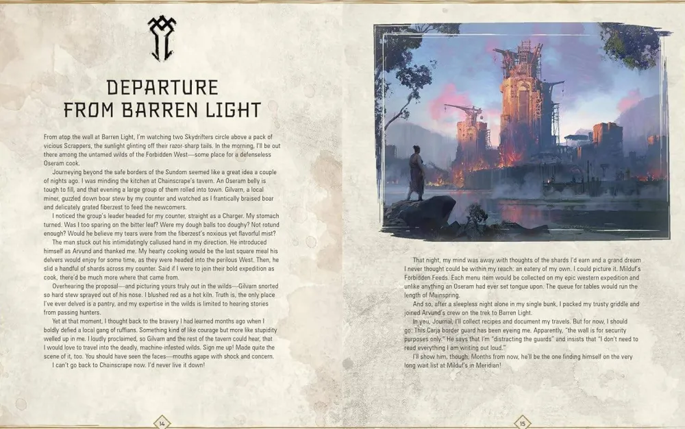 You’ve explored the wicked heat of the Sun Furrows, the peaks of the Longroam, and the vast, deadly wilds of the Forbidden West. These locales are filled with danger, but they’re also packed with enough strange and amazing food to make a feast fit for a Seeker! Now you can craft more than 60 delicious meals with Horizon: The Official Cookbook.