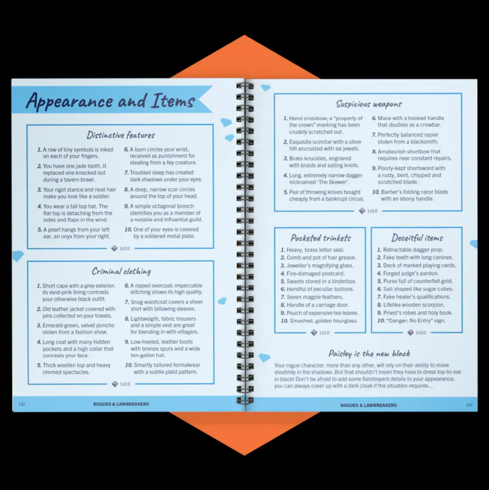 Are you a game master who is looking to create awesome NPCs, hand out tailored loot to your party, or help your players make their most memorable characters yet? Are you a player who wants to add more role-playing moments to your games, dig deeper into your backstories, and add unique twists to your characters? By taking ideas and inspiration from the breadth of random tables within Roll & Play: The Fantasy Character Kit, your campaigns will soon be full of memorable characters and unforgettable role-playing moments that will bring a totally new dimension to your games!