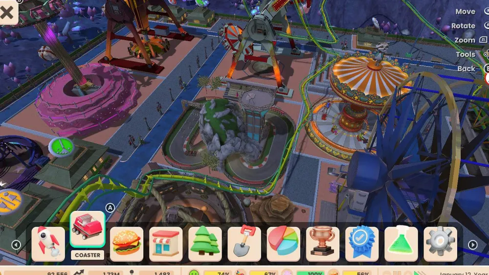 - Painting: every ride, coaster, shop and restaurants can be customized with a range of colours so you can make them stand out or create colour-coordinated sections of your park.