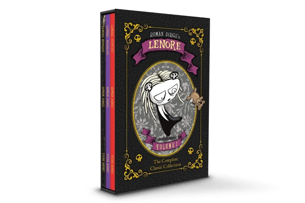 In 1992, Roman Dirge, the Michealangelo of the Macabre unleashed his most famous creation upon the world and now, Titan Comics are proud to repackage those original impossible-to-find early comics into three fabulous hardback books featuring all those early outrageously funny Lenore comics, short stories and flights of deranged comedy genius that Roman could muster.