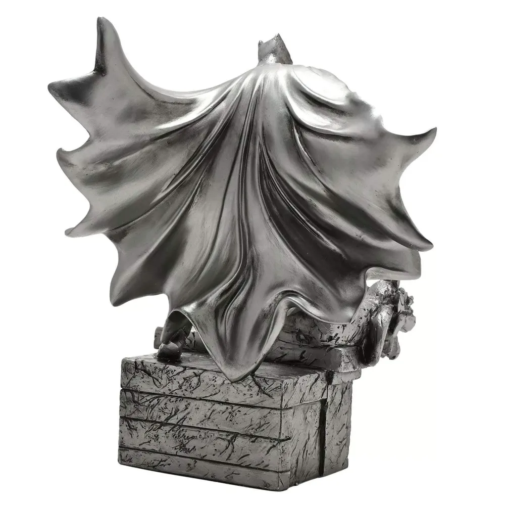 This detailed resin figurine features Batman perched atop a gargoyle as he surveys Gotham City below. The Dark Knight’s signature cape flows dramatically behind him in an air of brooding mystery.