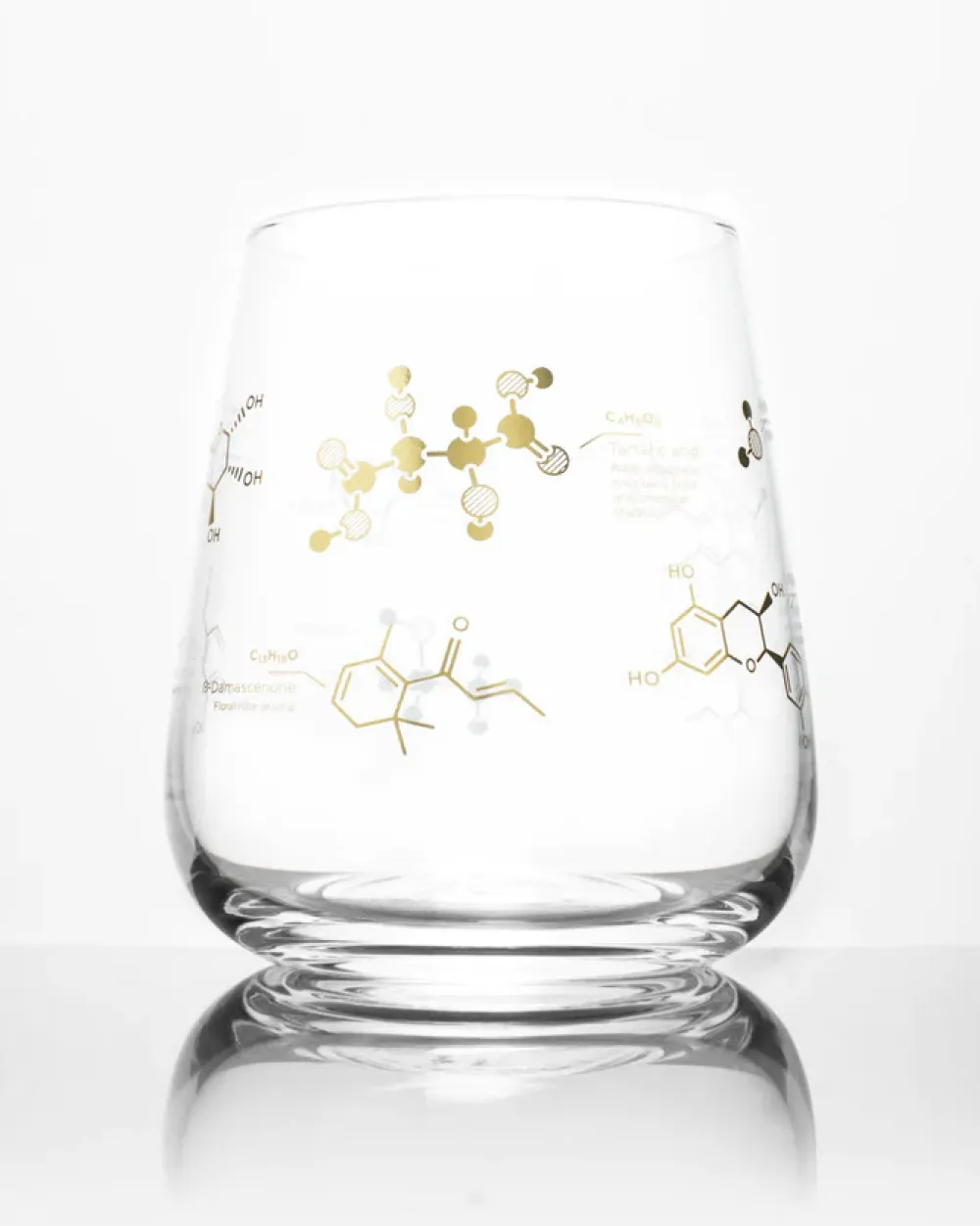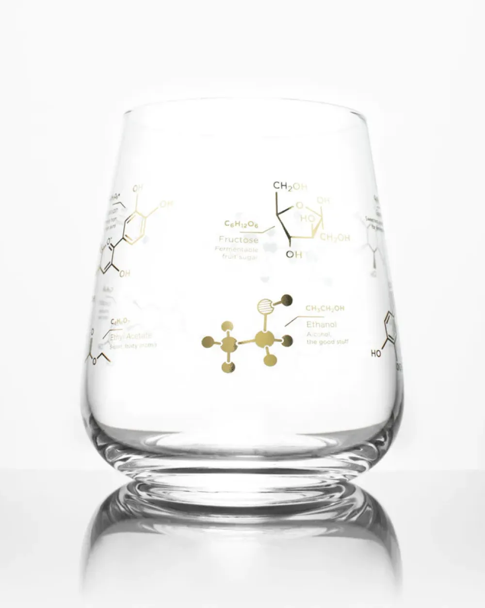 This Wine Chemistry Glass is for wine connoisseurs, chemists, and anyone who appreciates that wine is so much more than just the ethanol. Celebrate the complex bouquet of molecules that give your favorite wine its unique qualities and flavors. You’ll find molecules such as vanillin, which brings a sweet creamy taste – or ethyl acetate, which imparts sweet, fruity notes.